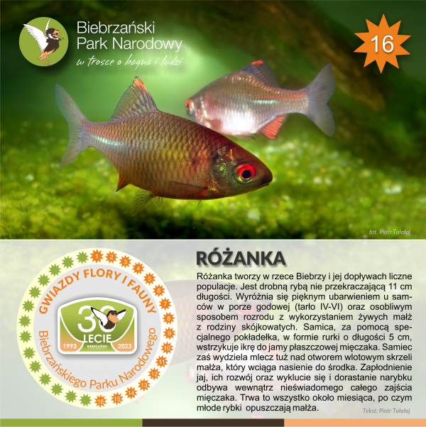 Z cyklu 30 gwiazd na 30-lecie Parku - RÓŻANKA - mała ale nadzwyczajna rybka, z grupy gatunków szczególnie chronionych w ramach sieci Natura 2000. Na szczęście w dolinie Biebrzy jest liczna i ma się bardzo dobrze.